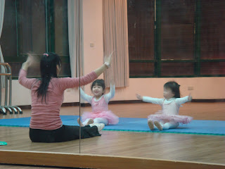 自從在偶然的機會下知道我們家附近有開芭蕾舞課後,跟媽咪吵了很久想要上課的意願,但一開始礙於年紀及開班狀況的關係,一直到今年初才終於如願報名了芭蕾舞課.因為我常常都是第一位到教室的,所以常常當老師的小幫手幫忙鋪墊子今天因為另外幾位同學請假,只剩我跟我的好友筠筠所以柔柔老師可以幫我們一一指導(話說啊!我們這班都是我認識的同學啦...哈哈)我們兩個今天都很認真上課喔!因為明天到學校我們還要負責教其他小朋友呢!預觀賞精彩片段請連結至balie